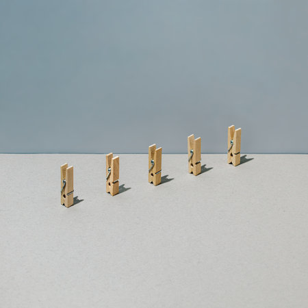 Minimal pattern idea with woodens clothespins on dark and light gray background. Creative composition with copy space.