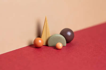 Minimalistic abstract composition with simple geometric figures. Still life background with elegant triangles and other forms. Harmony concept backdrop with shapes. Laconic geometry set construction