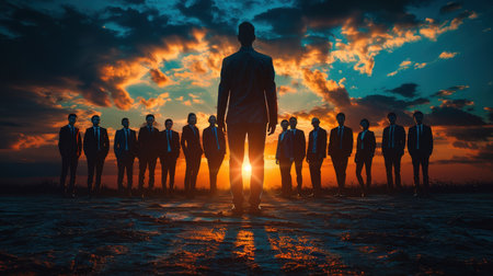 Silhouette of a group of business people standing in the water