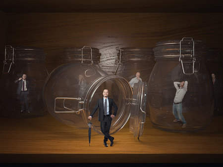 3d glass jail and business people prisoners