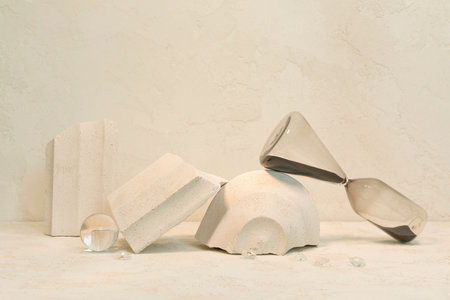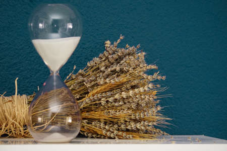 creative photo of nature and beauty products, sandglass background