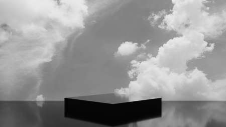 Abstract composition with different showcase pedestals on color background