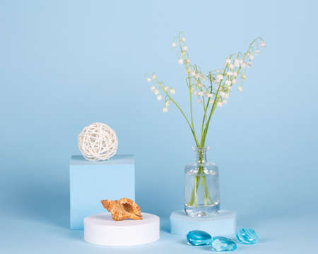 Intlation with lily of the valley flowers and geometric shapes