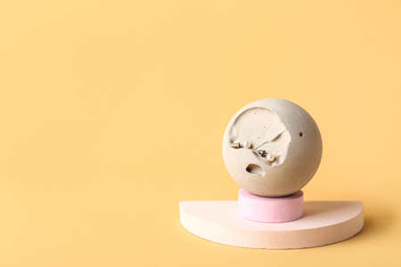 Showcase pedestal with earrings on color background
