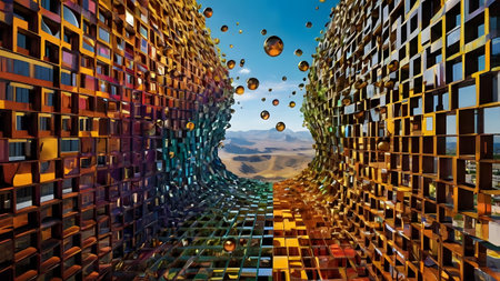 Exploring retro-futuristic concepts with abstract geometric shapes in vibrant colors
