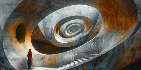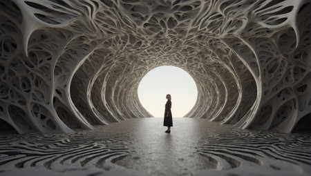 Woman in a twisted tunnel. AI generated