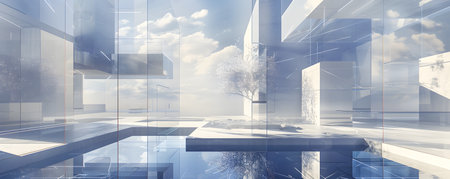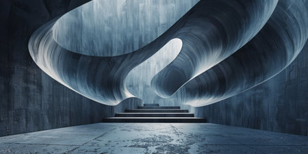Abstract composition featuring 3D arches and fragmented elements in modern art architecture