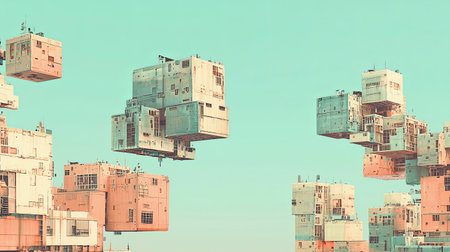 Construction site of a modern art museum Surreal depiction of a floating construction sit