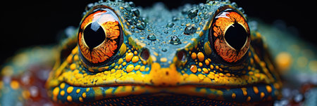 frog with droplets of water, panoramic layout. Generative Ai