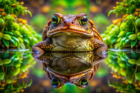 Surreal Symmetrical DSLR Photo: Cane Toad in Nature, Mirror Image Reflection