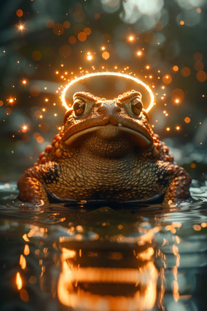 Enchanted Fantasy Toad with Glowing Halo in Mystical Forest Pond at Twilight AI Generative