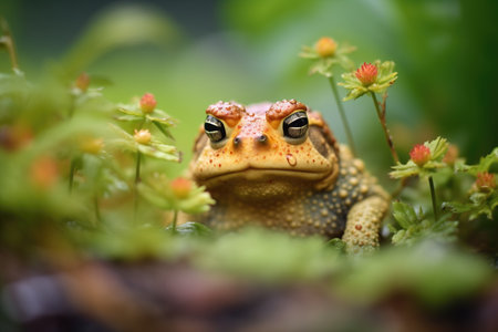 Close Up Portrait of a Colorful Toad Sitting Among Water Lilies with Soft Bokeh Background AI Generative