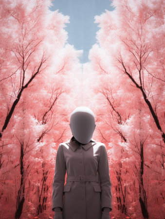 A person is reaching his hand towards a tree in a conceptual portraiture style mixes realistic and fantastical elements rendered in cinema4d its a digital art that can be use for wallpaper poster or any design inspiration