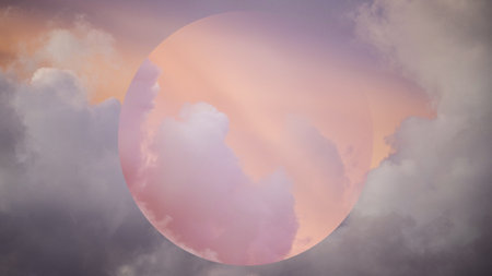 Aesthetic sky, pink moon, gray cloud
