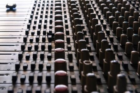 Analogue sound mixing table. Foreground and background out of focus, focus in the middle of the shot