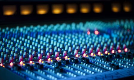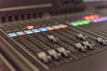 Blurred sound mixing control , close up texture and pattern of music panel electric instrument . entertainment professional machine set .