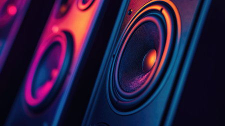 Closeup of black premium loudspeaker for music and home theater system with color mood and tone style