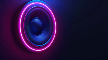 Neon illuminated speaker against a dark background, showcasing vibrant colors and a sleek design, perfect for modern decor