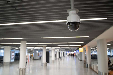 Security CCTV camera or surveillance system in office building, Intelligent cameras can record video all day and night to keep you safe from thieves. Surveillance camera Anti-theft system concept.