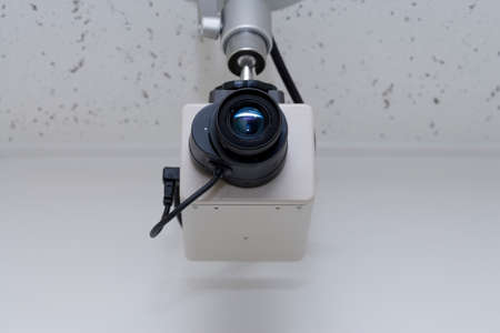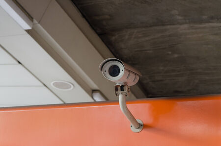 Security CCTV camera or surveillance system in office building, Intelligent cameras can record video all day and night to keep you safe from thieves. Surveillance camera Anti-theft system concept.