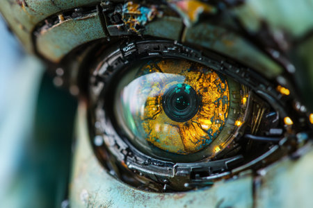 Close up of a robot eye exploring the intricacies of artificial intelligence technology