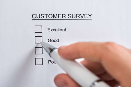 Close-up Of Person Hands With Pen Filling Customer Survey Blank Form
