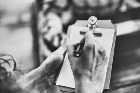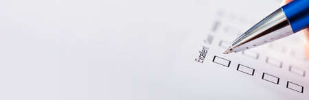 white questionnaire and hand with pen