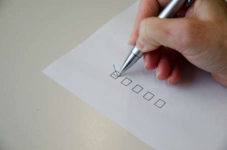 Filling Survey And Office Report. Ticking Check Box