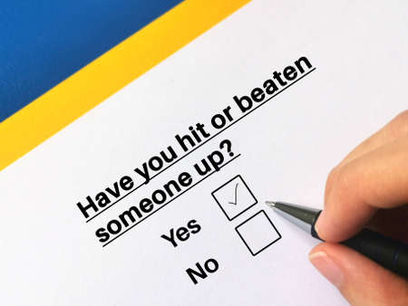 One person is answering question about child bully. The person has hit or beaten someone up.