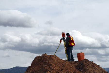 Surveyor engineer is measuring level on construction site. Surveyors ensure precise measurements before undertaking large construction projects.