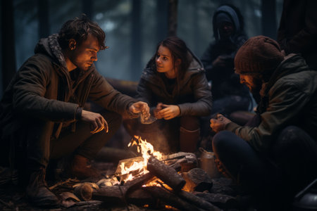 Cosy Moments: People Gathering around a Campfire in a Crop Field (AR 3:2)