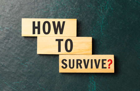 How to Survive words on wooden blocks. The concept of survival of a business startup. The concept of coronavirus prevention in the healthcare sector.