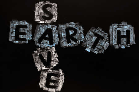 Crossword of Save Earth drawn with colorful chalk on a blackboard