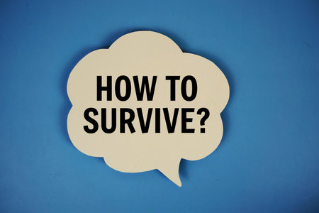 How to survive text with speech bubble top view on blue background
