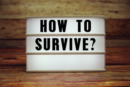 Lightbox with text How To Survive? on wooden background