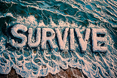 AI Generated - Painting of the word survive written in the middle of a body of water. Commercial illustration artwork for business applications. High resolution. Premium quality. Professional grade.