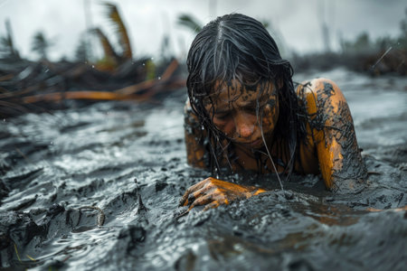 Devastation of a natural disaster, a poignant portrayal capturing emotional impact and destructive force unleashed by nature's fury, evoking a profound sense of loss and resilience in its aftermath