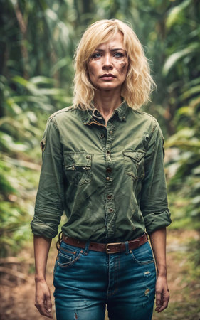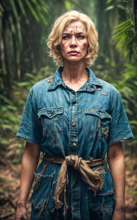 photo of missing beautiful woman survive lost in jungle, generative AI
