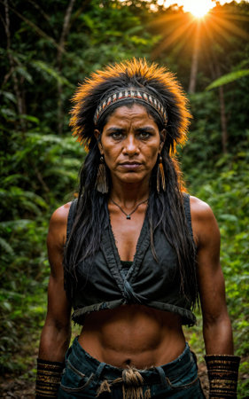 photo of savage tribal woman in the jungle, generative AI