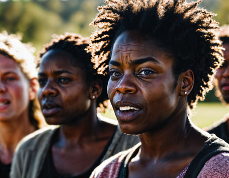 photo group of angry black slavery people in American history , generative AI