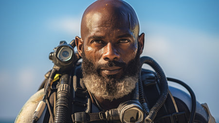 Portrait of a handsome African American man in a diving suit.