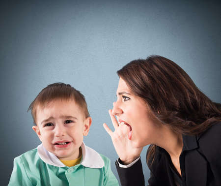 Woman screaming to a crying baby boy