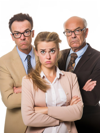 Businessmen with strict and scared faces in formal wear