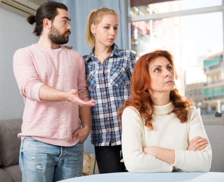 Young serious couple has a family stressful conversation at home