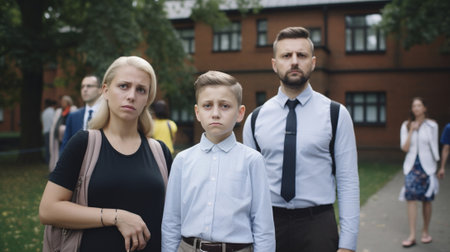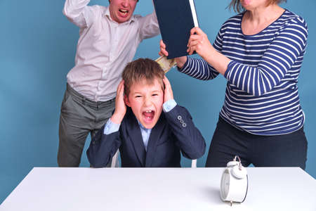 Upset boy scolded by mother and father