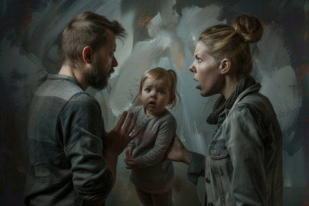 Child covers ears in fear while parents argue concept of domestic violence and childhood trauma