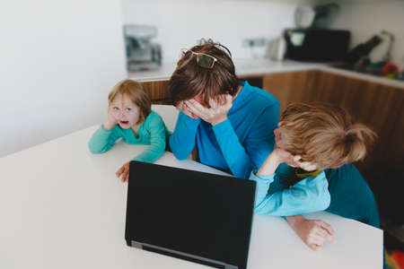 father try to work from home while kids talk and interrupt him