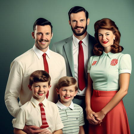 Medium shot family in retro style