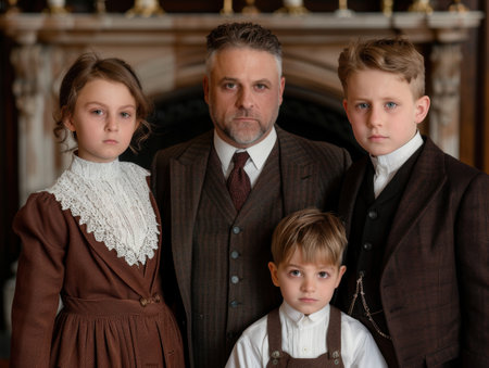 A Medium Shot of a Family in a Classic Style