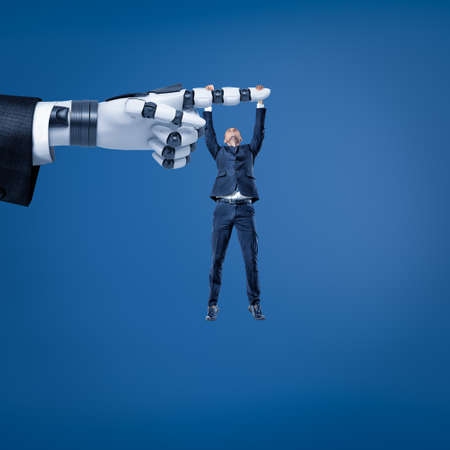 Contemporary art collage, Creative artwork of businessman bangle, fall into nowhere, hole isolated on painting background. Failure. Concept of business, career growth. Copy space for ad.